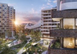 Стоимость лотов начинается от 17,5 млн рублей. В новом квартале в рамках двух очередей построят 3 небоскреба и 2-этажное здание под ресторан.
